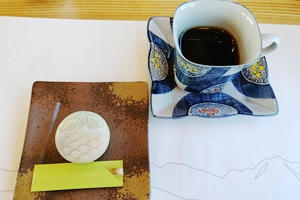YKKのコーヒーと引網香月堂の上生菓子!
