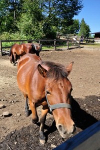 ↑妊婦のように見えますが、木曽馬は元々ボッテリしてるんだそうで・・・。