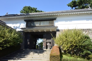 橋を渡って階段上ったら常盤木門