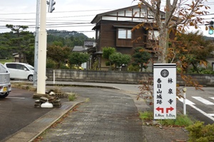 看板を右折して2分程歩いたところにある