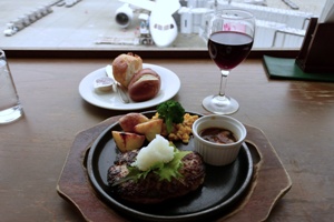 和風ハンバーグとグラスワインにB787-8 Dreamlinerを添えて