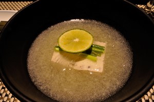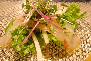 すりおろした蕪のスープです。お好みでカボスを絞って。