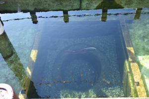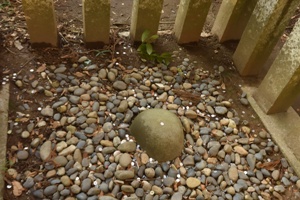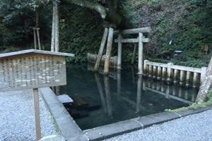 ここから右に行くと要石、左に行くと御手洗という池があります。