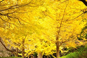 あざやかな黄葉のトンネルが素晴らしい、馬頭観世音を横目に通り過ぎたら