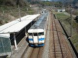 ↑3両編成で到着。跨線橋を渡ると集札箱があります。