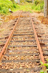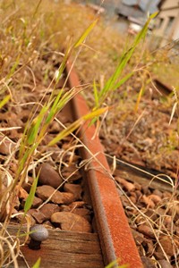 木の枕木と錆びたレール。