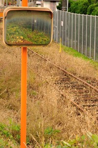 列車や乗客の安全を確認することのないミラー。