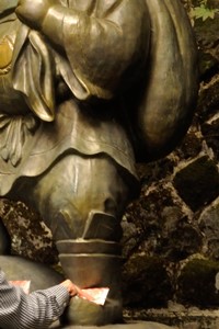 五郎丸選手似の大黒天様の足元にひれ伏す。