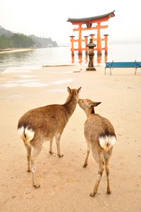 列車とフェリーを乗り継いでやってきたのは、安芸の宮島!