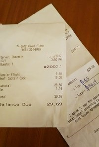 $29.69の伝票(写真左)を持ってきたのでカードをお渡し。