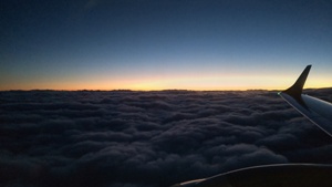 30名ほどの思いを乗せて、雨模様の羽田をテイクオフ!