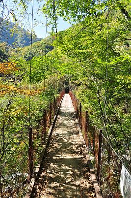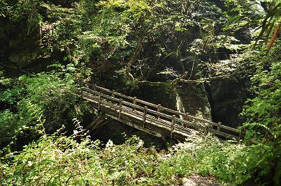 この橋を渡ったら、七ツ釜五段の滝は近いゾ!