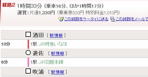 酒田⇒吹浦を調べてみましたよ。