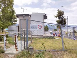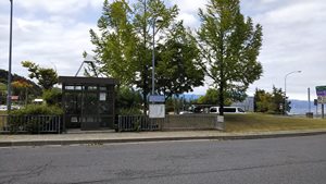 駅の目の前にアルピコ交通の営業所があるので、間違えないように!