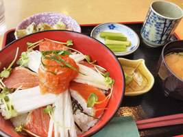長野県産の信州サーモンと県内産の長芋の丼です。